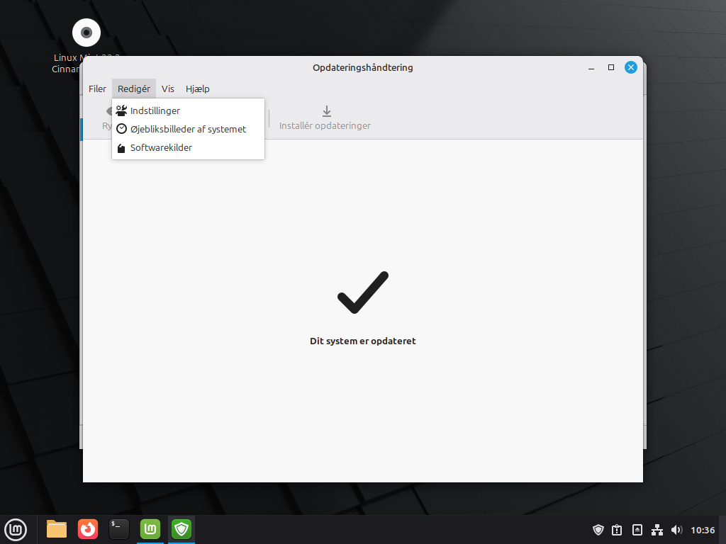(denne guide forudsætter at du benytter Linux Mint og ikke har ændret nævneværdigt på grænsefladens udseende)