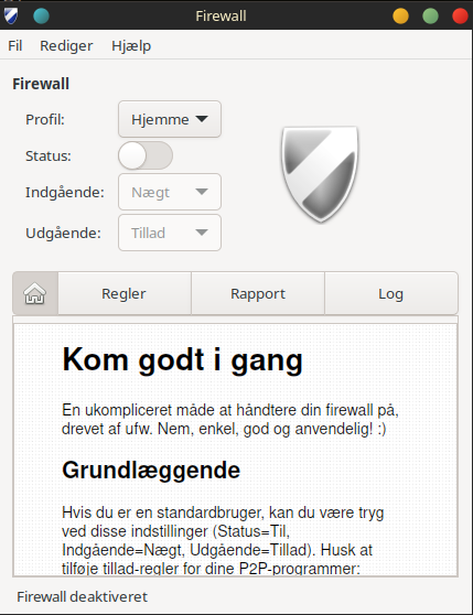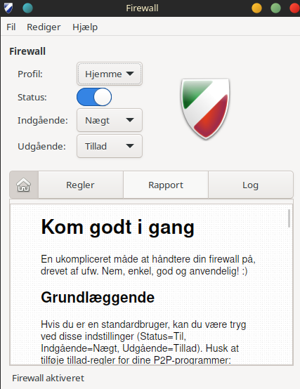 Det var sådan set det. Nu har du en fint konfigureret firewall, der kører fra nu af og som starter sammen med dit system.