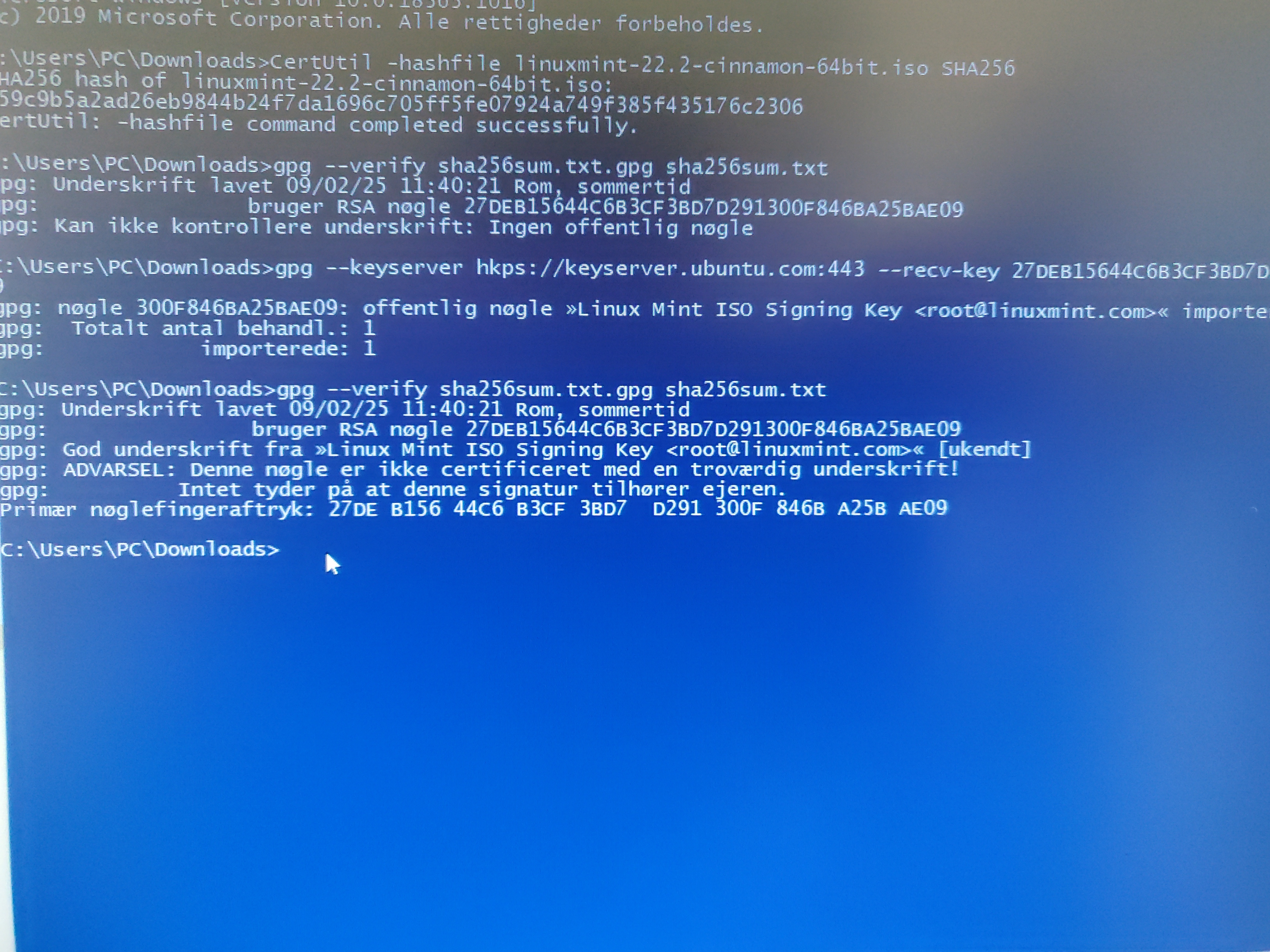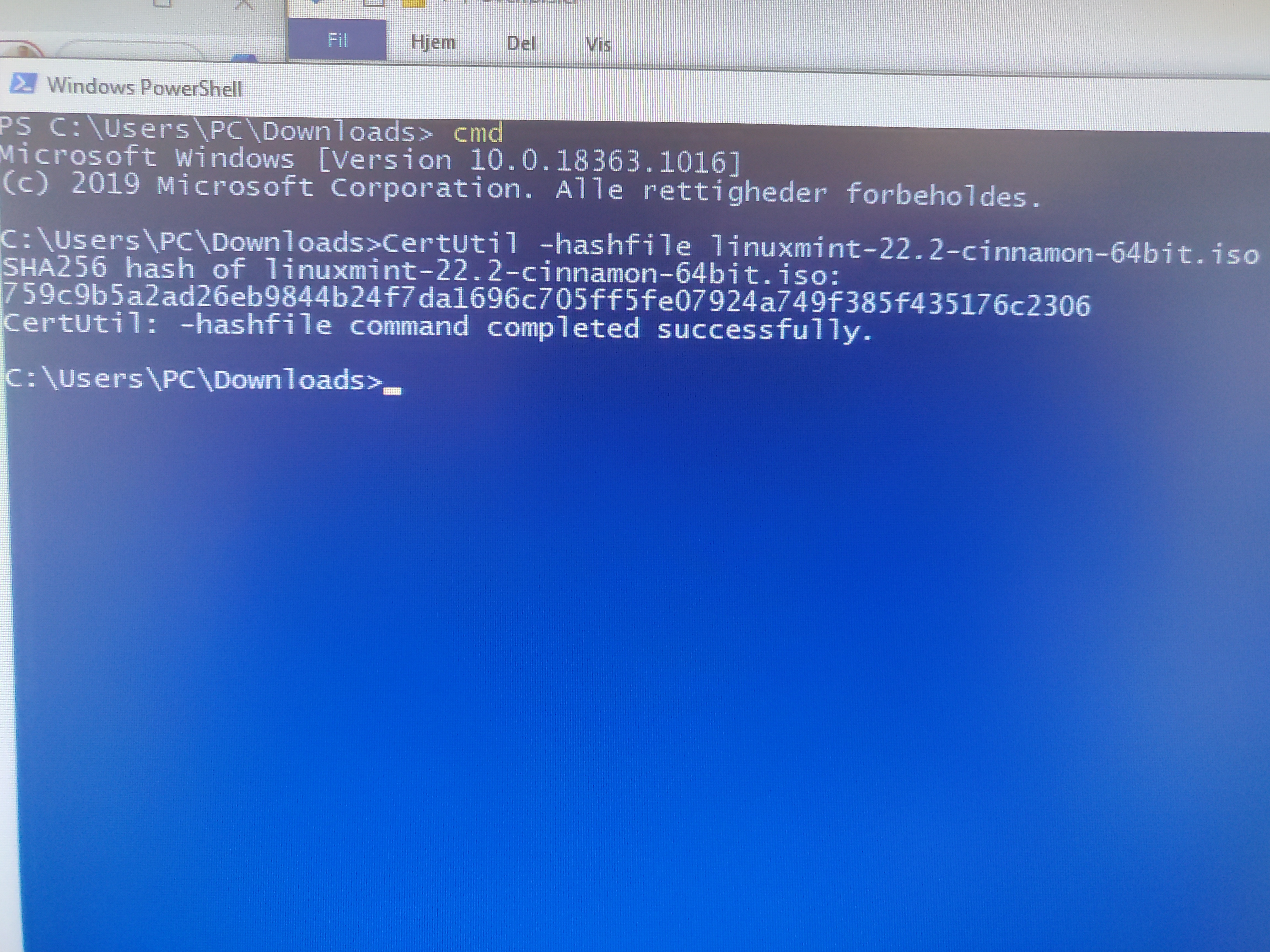 Her følger en guide i at verificere ægteheden - hvis du er på en maskine der kører Windows 10 - af den iso-fil med Linux på, som du har hentet fra hjemmesiden for den version af Linux, du ønsker. Eksempelvis Linux Mint