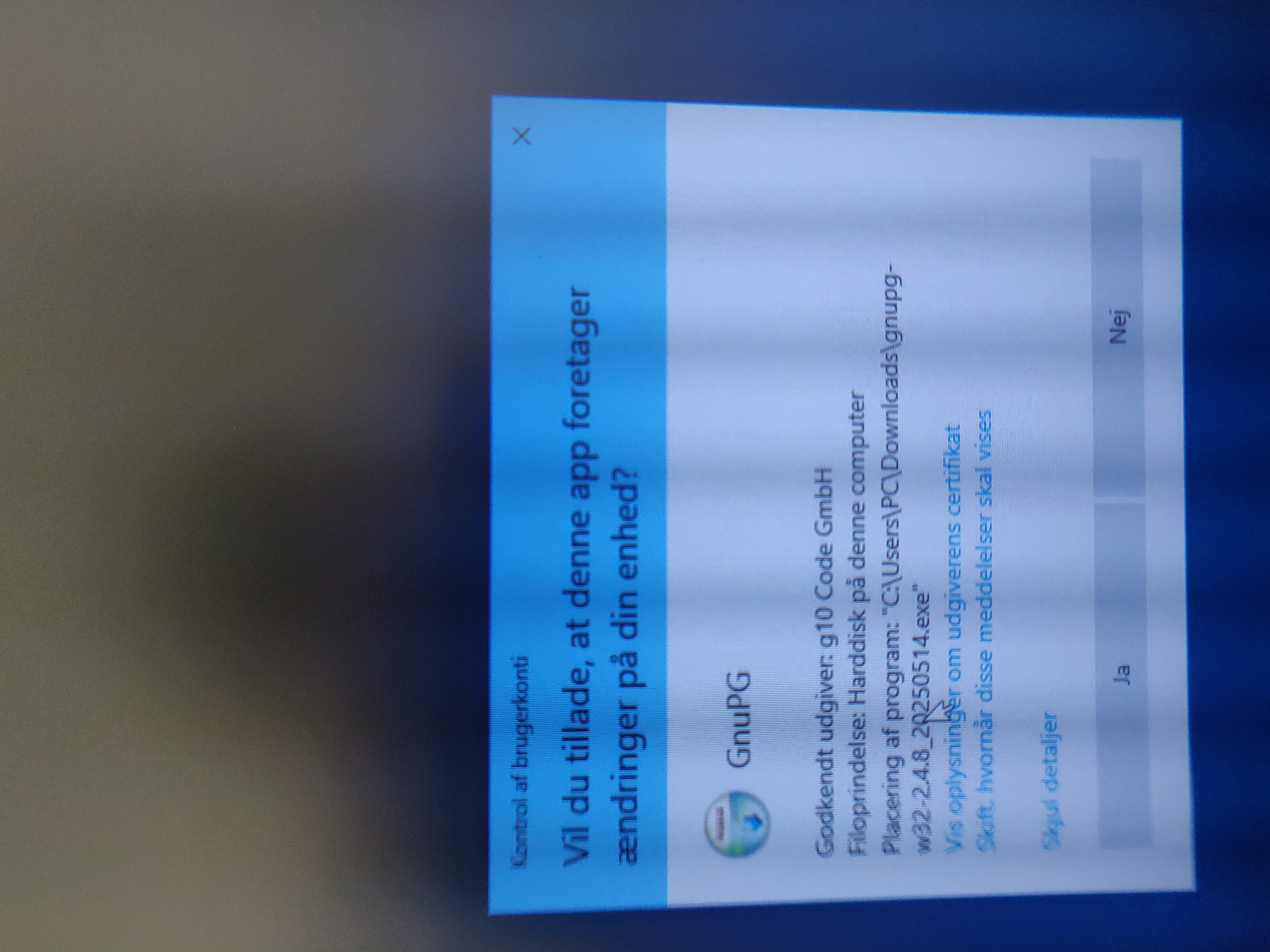 Klik på “ja” til om du vil tillade at denne app foretager ændringer på din enhed". Det er en sikkerhedsforanstaltning som Linux også anvender, hvor man skal bekræfte kørsel af nye programmer før de kan gøre noget på maskinen.