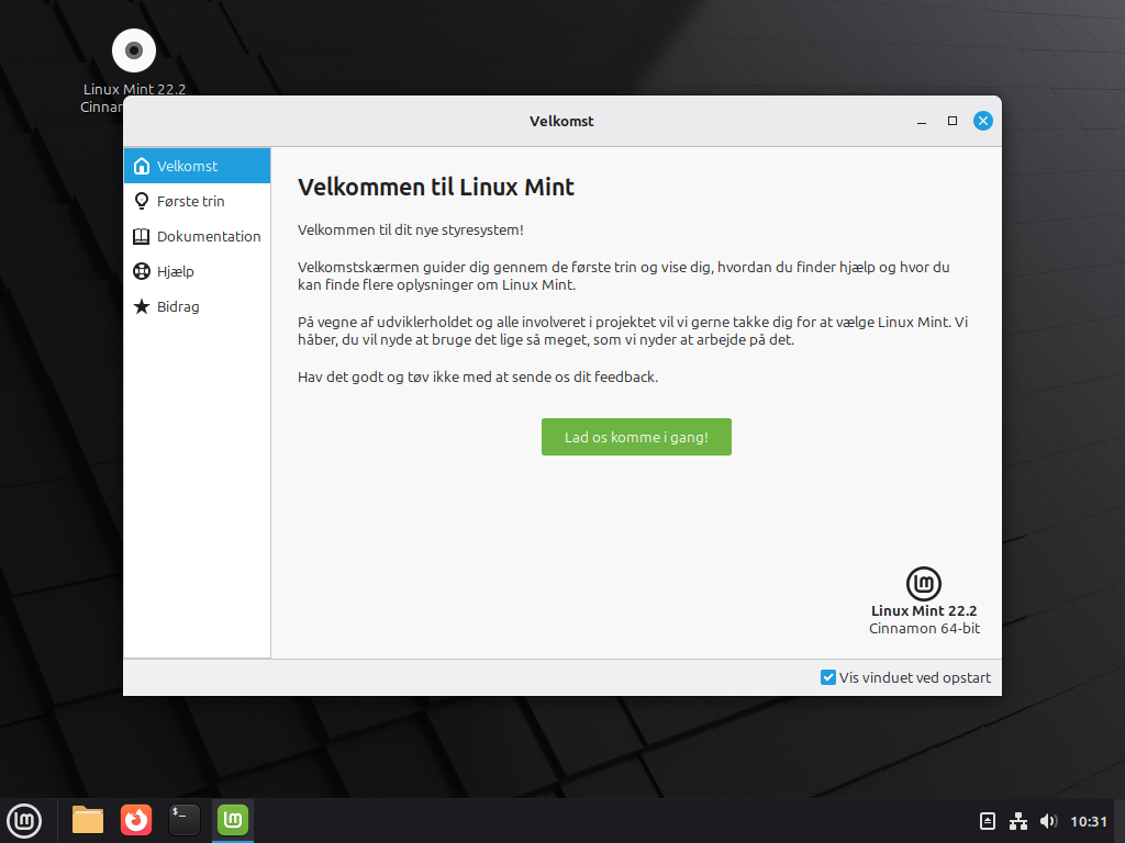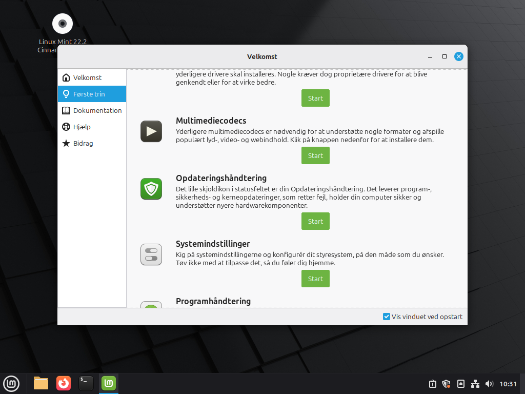 Dette er blot 1 af mange indstillinger du kan justere på, når dit system starter op første gang og åbner denne dialog: